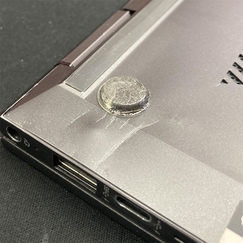 背面のカバーが一部曲がっていて、ネジの受けが破損してました。