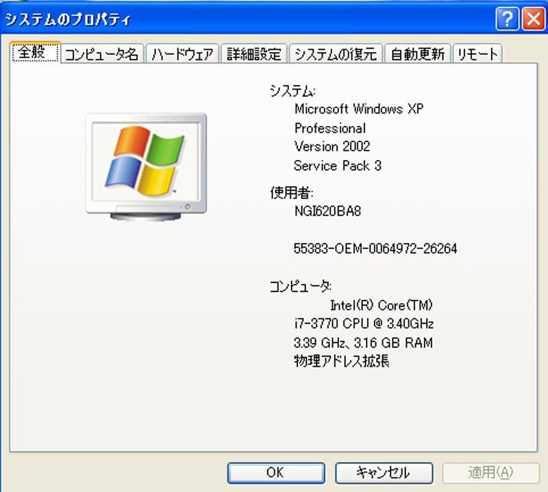 メモリは16GBですが、XP上では4GBのみ使用可能です。