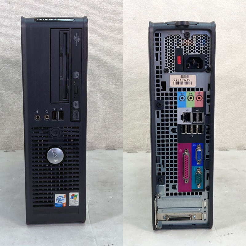 希少なWindows XP SP3を搭載したDELL OptiPlex GX520!フロッピー内蔵、パラレルおよびシリアルポートを兼ね備えており、レトロなPC用途にも最適です。