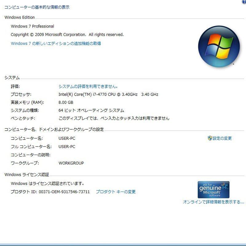 【OS1】:Windows 7 Pro 64bit(SP1)