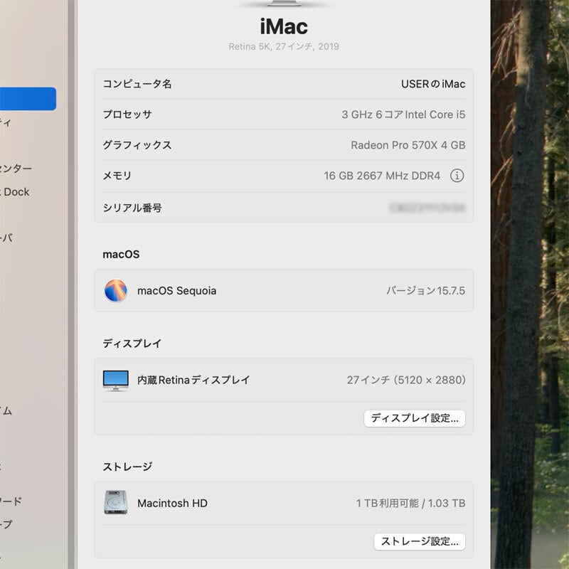 MacOS Sequoia Radeon Pro 570X(4GB) ★ Apple iMac (Retina 5K 27-inch 2019) Core i5-9500 メモリ16GB FusionDrive 1.03TB #2-3031